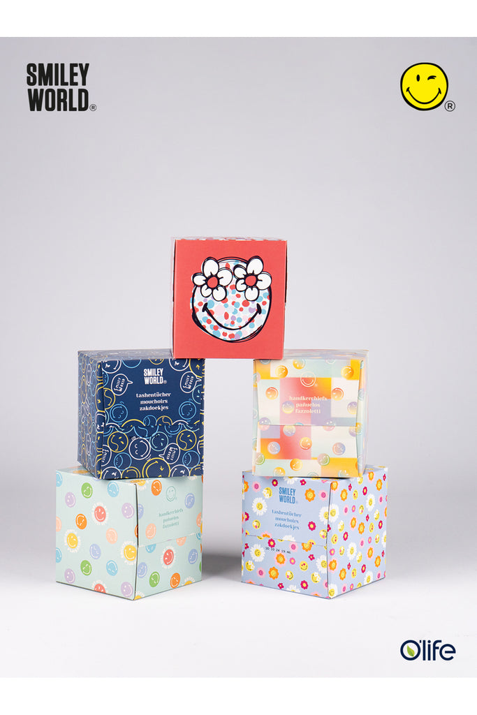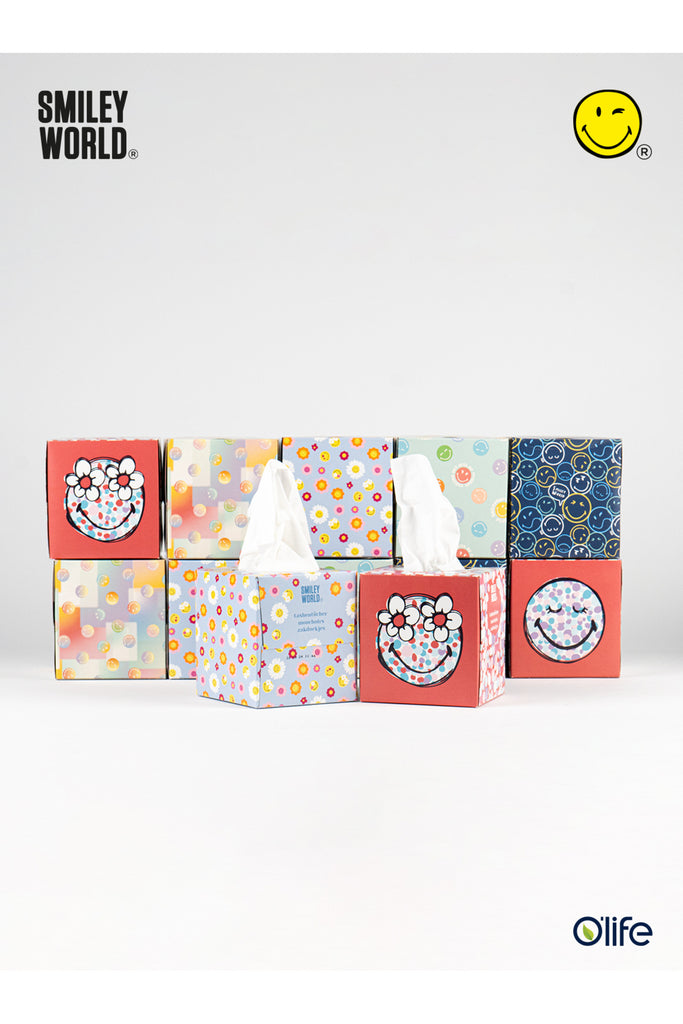 SmileyWorld® 3 Katlı Yüz Mendilleri, yalnızca ultra yumuşak dokusuyla değil; renkli tasarımları ve enerjik ikonlarıyla da fark yaratır.